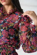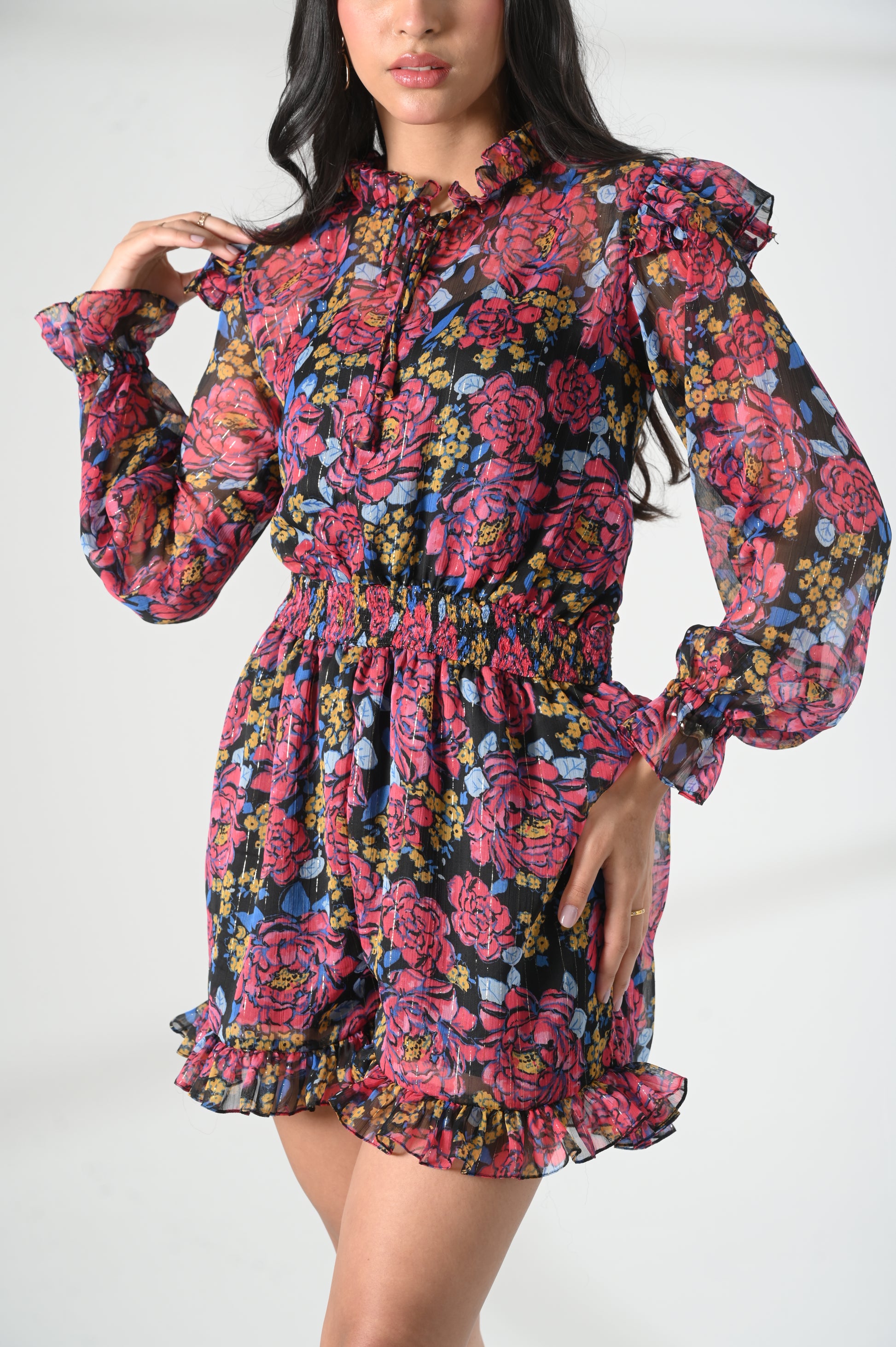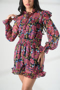 A dreamy blend of grace and movement crafted from premium luxe chiffon with full lining for a flawless, non-sheer finish. The ruffled detailing and soft floral patterns capture the essence of fall nights — warm, romantic, and timeless.