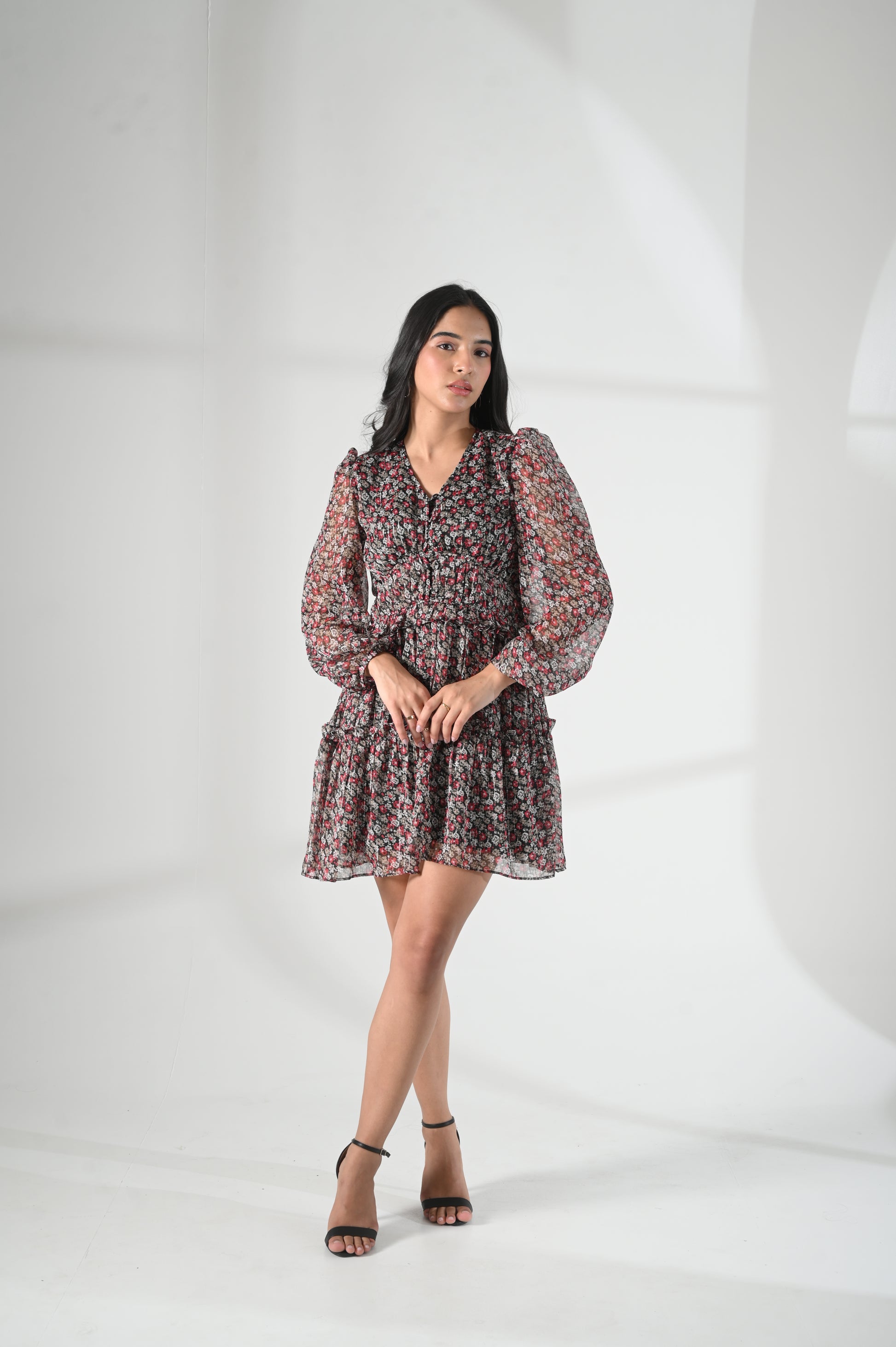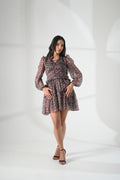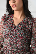 Crafted in high-quality premium luxe chiffon with full lining, this dress ensures a soft, non-transparent finish and graceful fall. Designed with delicate floral patterns inspired by autumn’s fading roses, it captures the romance of twilight hues. The flowy silhouette and dreamy texture make it perfect for cozy evenings or festive gatherings.